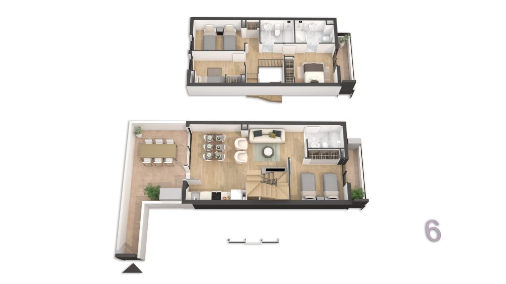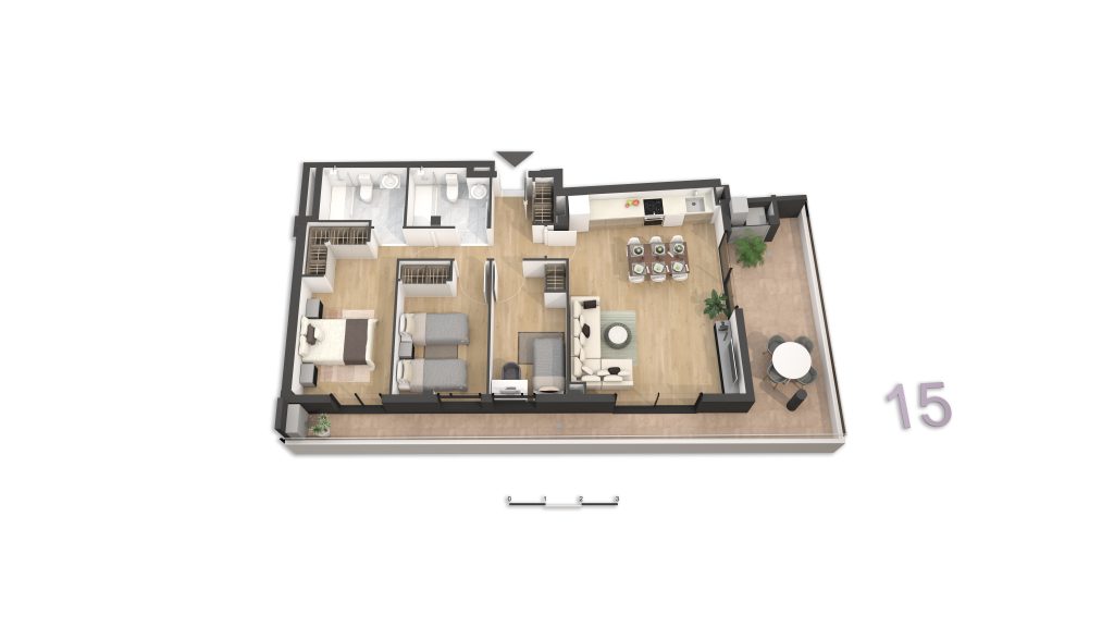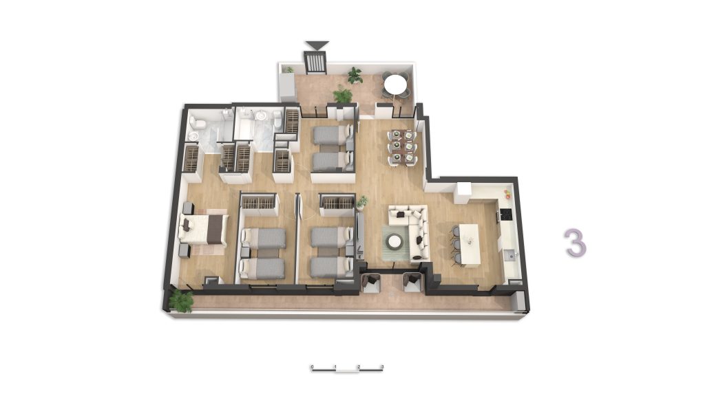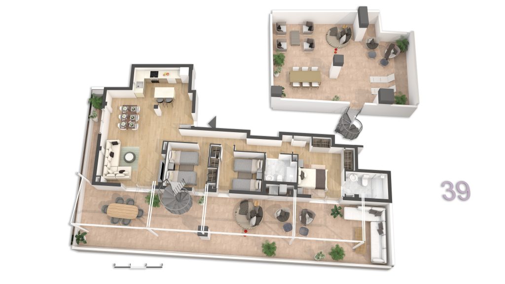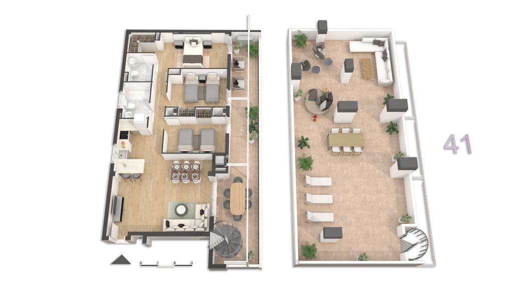 • Viviendas y Dúplex: Cada vivienda cuenta con terraza privada, lo que garantiza luz natural, ventilación y un espacio exterior propio en todas las tipologías. Además, la promoción dispone de plazas de garaje y trasteros, disponibles opcionalmente y no incluidos en el precio. Las viviendas están diseñadas para ofrecer el máximo confort y funcionalidad, con distribuciones que separan claramente las zonas de día y noche, cocinas abiertas al salón-comedor y amplias terrazas en todas las plantas. Los dúplex destacan por su doble altura, versatilidad y carácter exclusivo y combinan amplitud, privacidad y diseño contemporáneo.