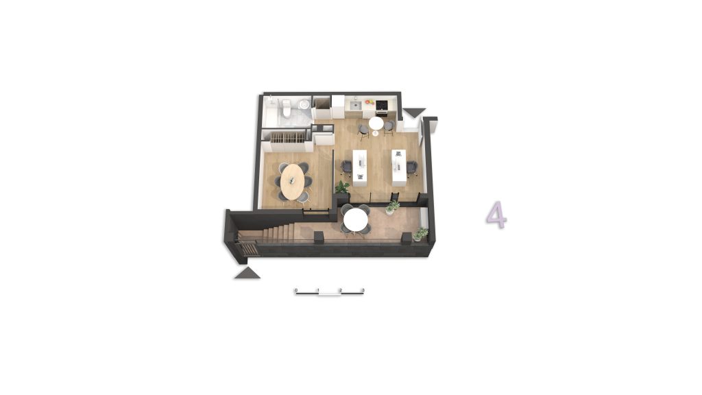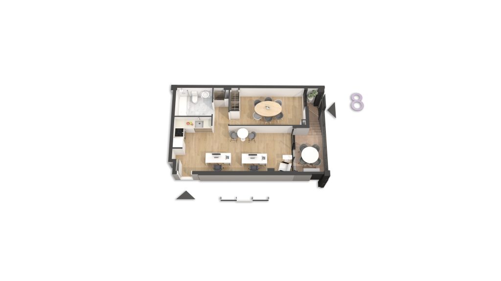 • Lofts Profesionales: Están concebidos como espacios de trabajo, ideales para despachos, estudios o pequeños negocios. Cuentan con un espacio independiente, baño completo, cocina office y acceso directo desde la calle. Una excelente oportunidad para combinar trabajo y entorno residencial en un mismo edificio.